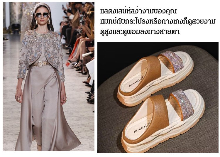 รองเท้าแตะเพิ่มความสูงติดเพชรกระพริบ